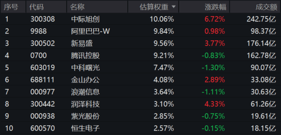 云计算ETF汇添富(159273)标的指数权重股多数飘红:中际旭创涨近7%,润泽科技涨超4%,新易盛涨超3%,金山办公涨超2%,阿里巴巴-W涨近1%。
